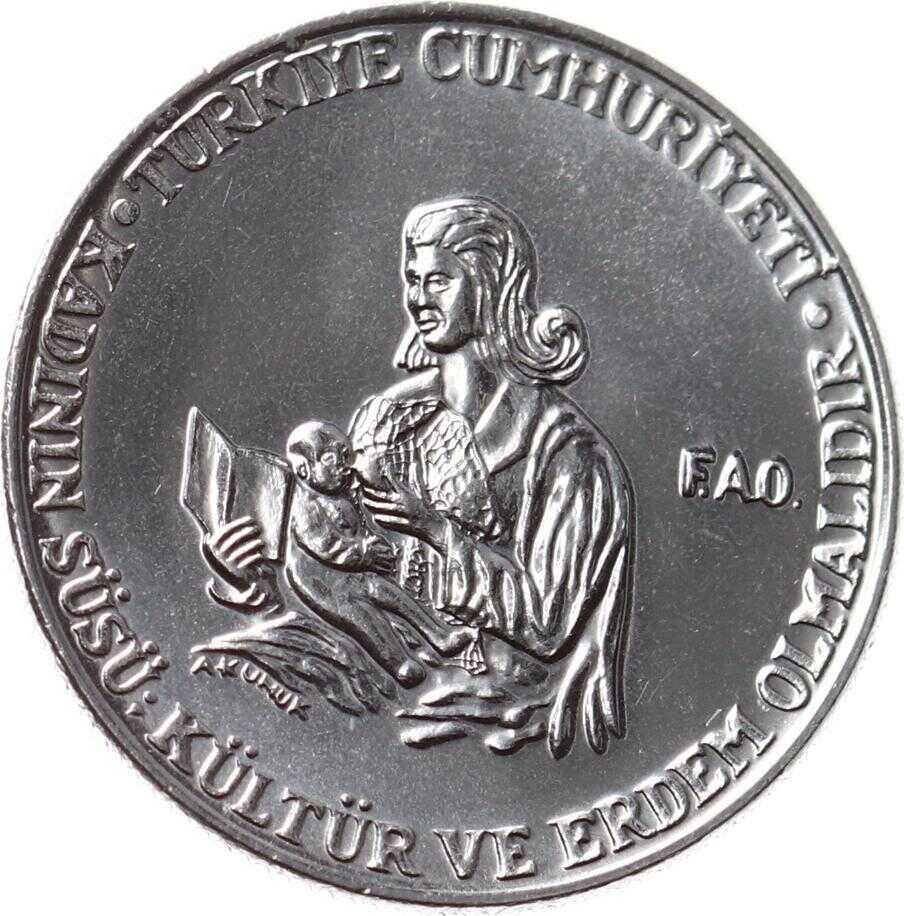 1976 Yılı 5 Lira FAO ÇİL *Kadının Süsü Kültür ve Erdem Olmalıdır* TCM2432