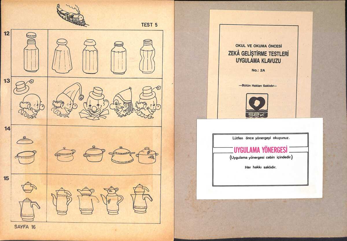 1980's Okul ve Okuma Öncesi Zeka Geliştirme Testleri 5-7 Yaş Bütün-Parça Kavramı Tamamlama Boyama Kitabı No: 2A NDR100552