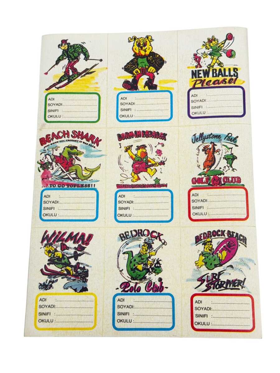 1990's Çakmaktaşlar Wilma&Bedrock Figürlü Retro Okul Etiketi 9'lu Vintage Set AKS2196