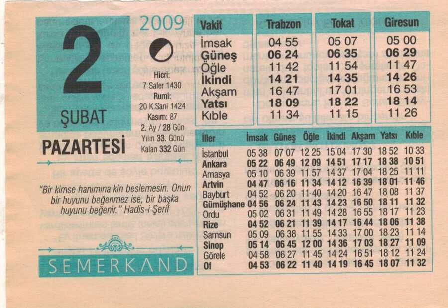 2 Şubat 2009 Takvim Yaprağı EFM(N)5607
