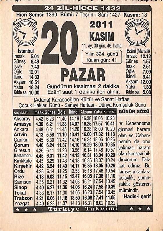 20 Kasım 2011 Takvim Yaprağı - Doğum Günü Hediyesi EFMN15269
