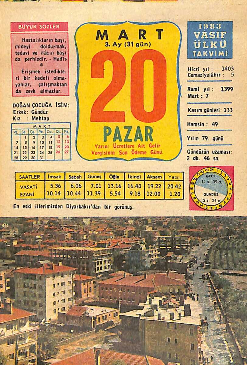 20 Mart 1983 Takvim Yaprağı - Doğum Günü Hediyesi EFMN15031