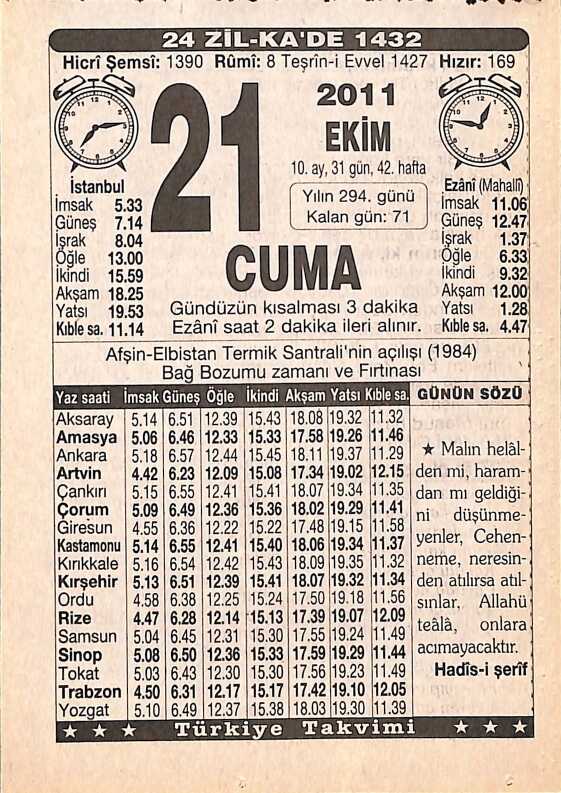 21 Ekim 2011 Takvim Yaprağı - Doğum Günü Hediyesi EFMN15299