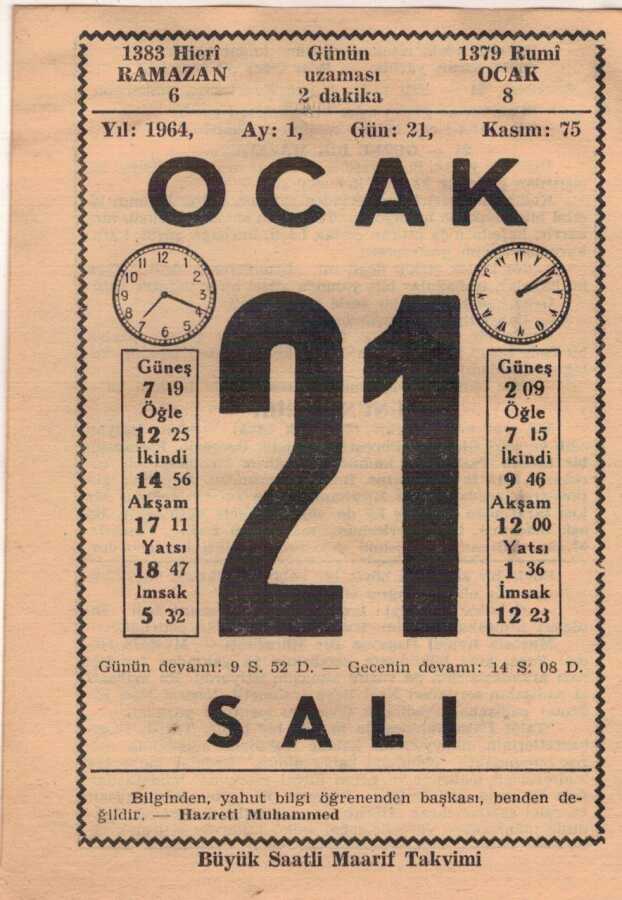 21 Ocak 1964 Takvim Yaprağı EFM(N)4544