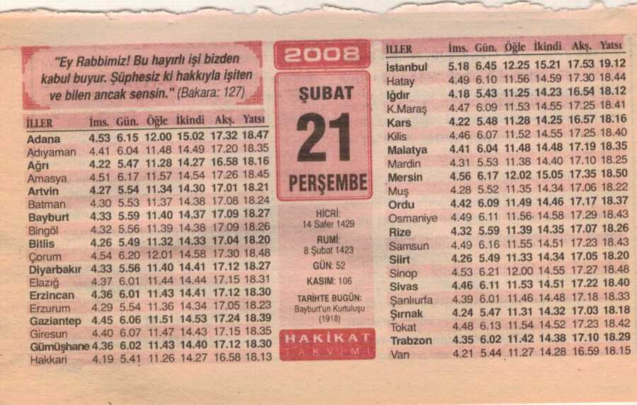 21 Şubat 2008 Takvim Yaprağı EFM(N)5568