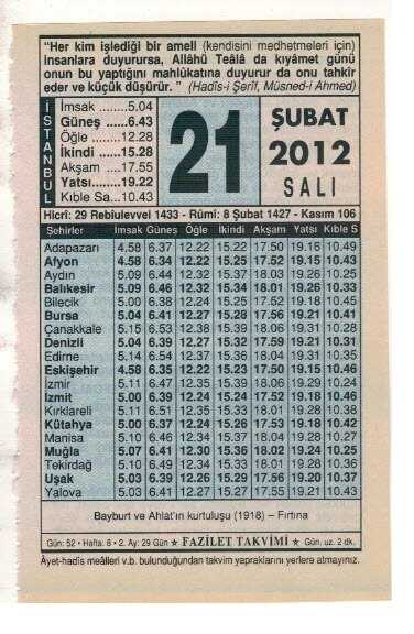 21 Şubat 2012 Takvim Yaprağı EFM(N)1862