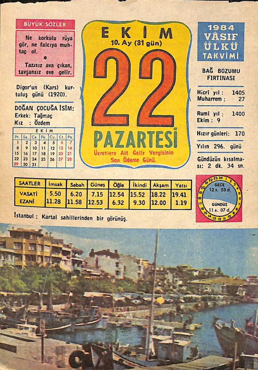 22 Ekim 1984 Takvim Yaprağı - Doğum Günü Hediyesi EFMN14817