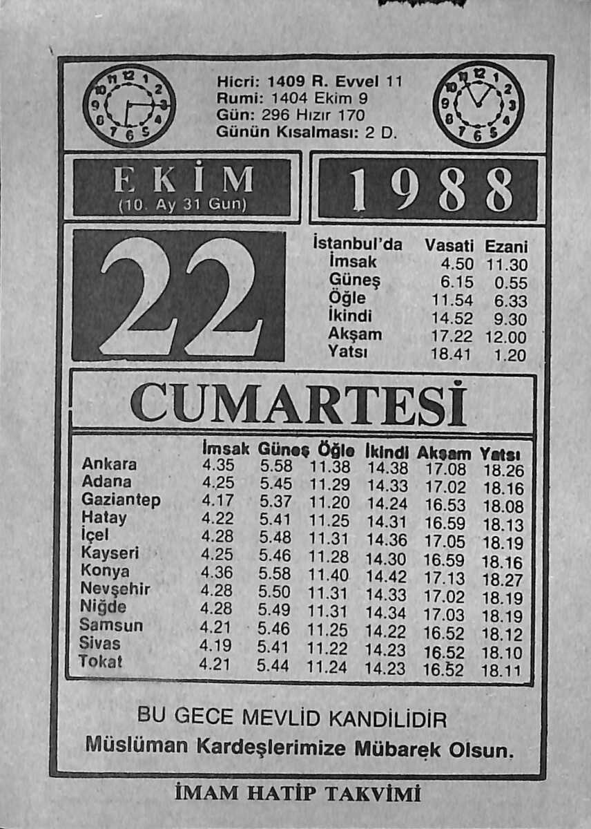 22 Ekim 1988 Takvim Yaprağı - Doğum Günü Hediyesi EFMN14639