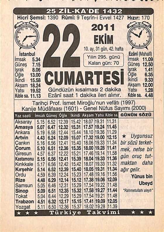 22 Ekim 2011 Takvim Yaprağı - Doğum Günü Hediyesi EFMN15298