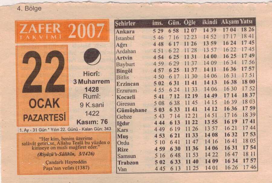 22 Ocak 2007 Takvim Yaprağı EFM(N)5109