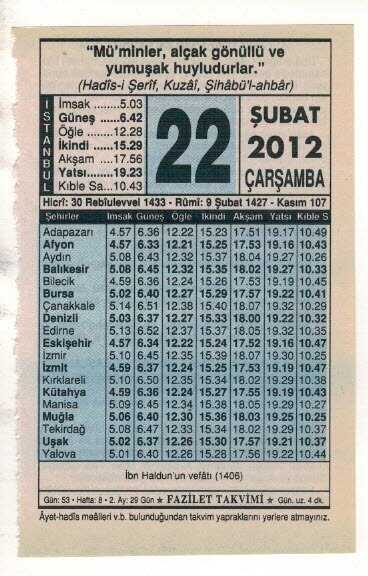22 Şubat 2012 Takvim Yaprağı EFM(N)1863