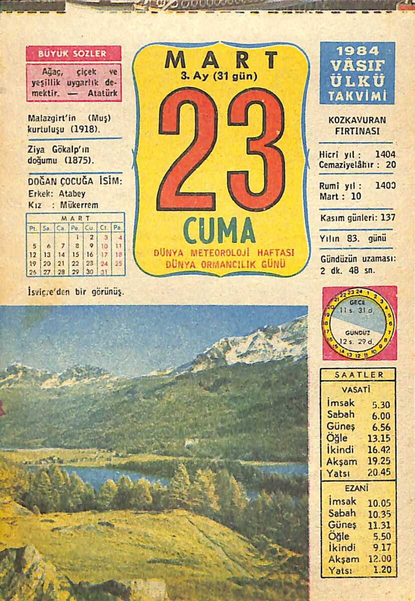 23 Mart 1984 Takvim Yaprağı - Doğum Günü Hediyesi EFMN15201