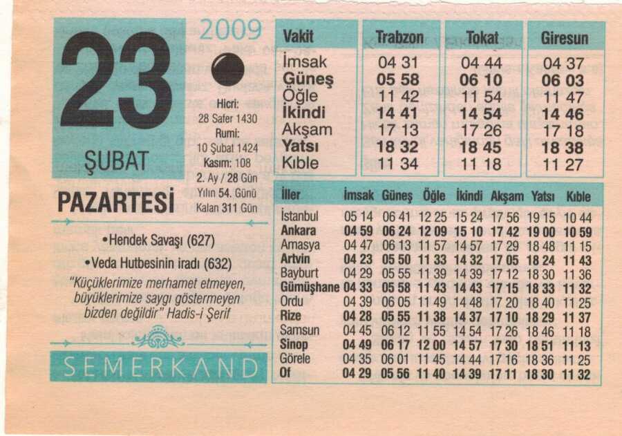 23 Şubat 2009 Takvim Yaprağı EFM(N)5628