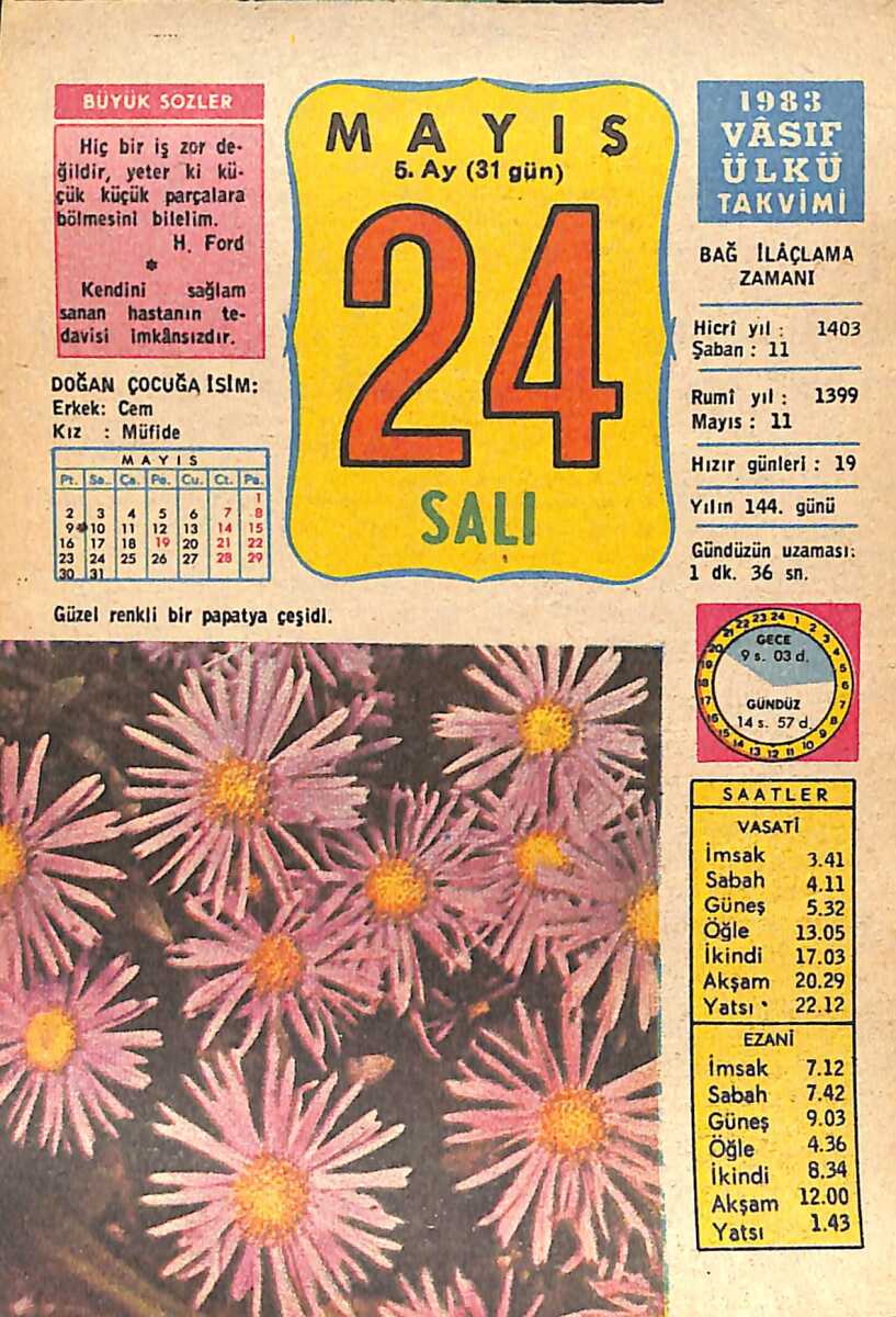 24 Mayıs 1983 Takvim Yaprağı - Doğum Günü Hediyesi EFMN15108