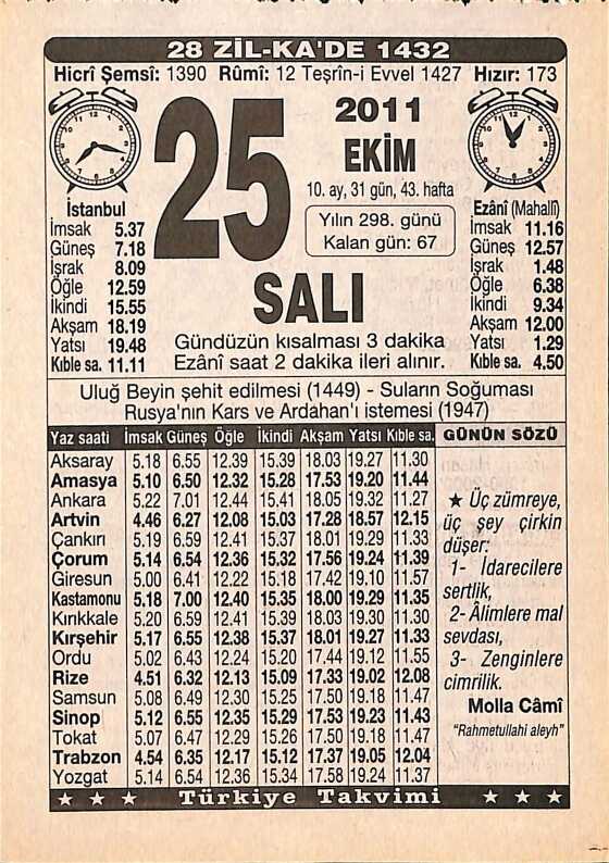 25 Ekim 2011 Takvim Yaprağı - Doğum Günü Hediyesi EFMN15295