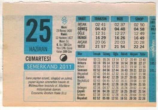 25 Haziran 2011 Takvim Yaprağı EFM(N)1221