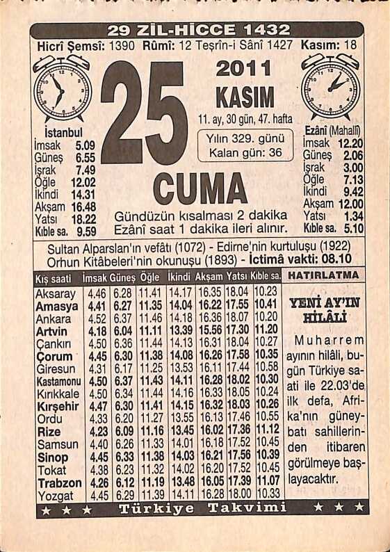 25 Kasım 2011 Takvim Yaprağı - Doğum Günü Hediyesi EFMN15264