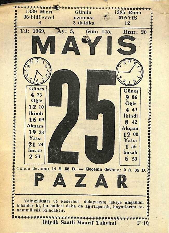 25 Mayıs 1969 Takvim Yaprağı - Doğum Günü Hediyesi EFM(N)11098