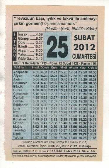 25 Şubat 2012 Takvim Yaprağı EFM(N)1866