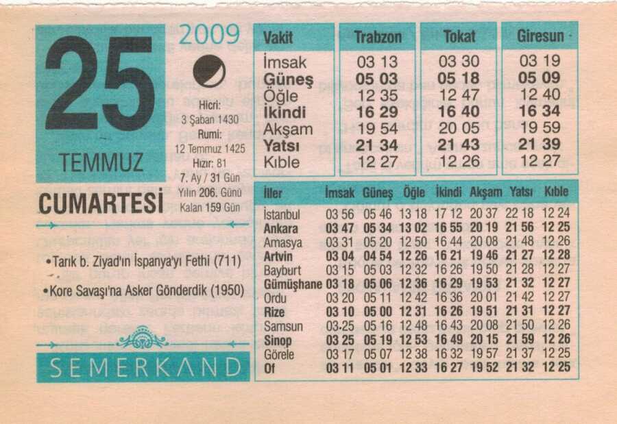 25 Temmuz 2009 Takvim Yaprağı EFM(N)2138