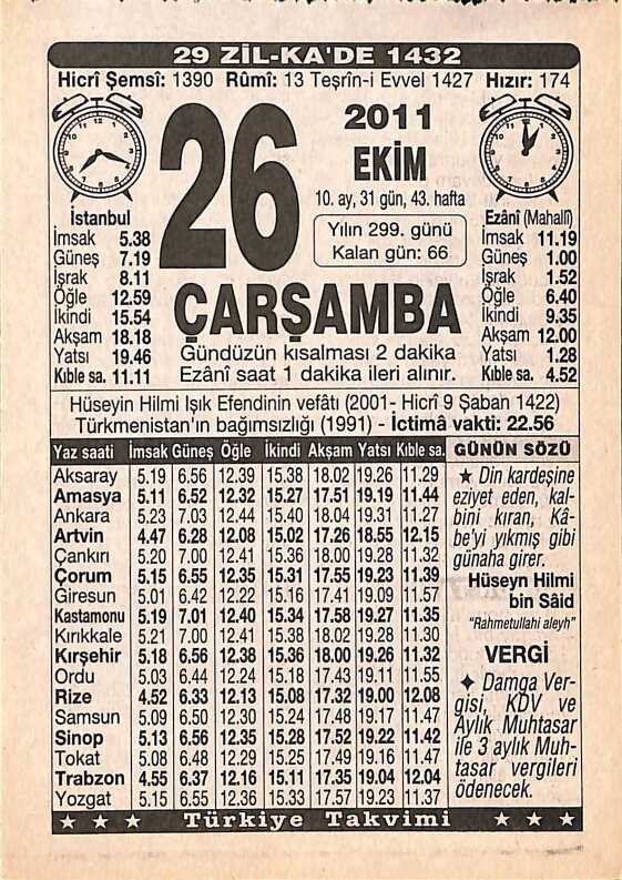 26 Ekim 2011 Takvim Yaprağı - Doğum Günü Hediyesi EFMN15294
