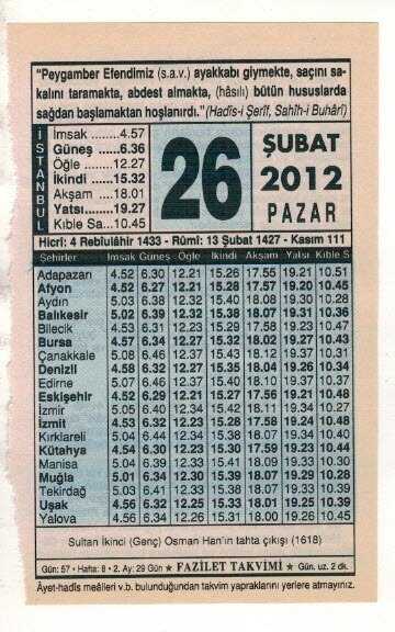 26 Şubat 2012 Takvim Yaprağı EFM(N)1867