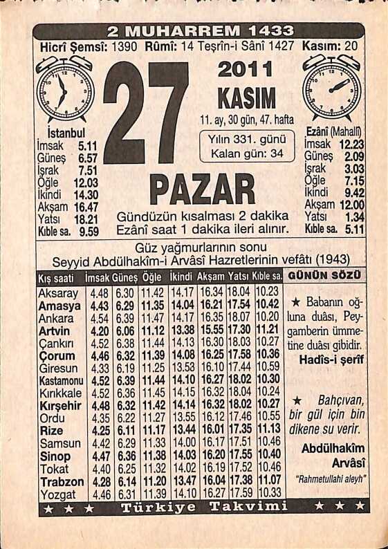 27 Kasım 2011 Takvim Yaprağı - Doğum Günü Hediyesi EFMN15262