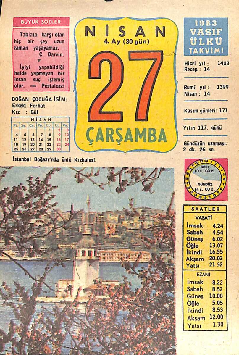 27 Nisan 1983 Takvim Yaprağı - Doğum Günü Hediyesi EFMN15134