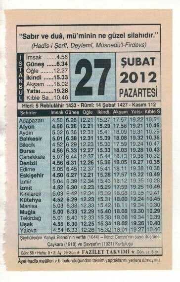 27 Şubat 2012 Takvim Yaprağı EFM(N)1868