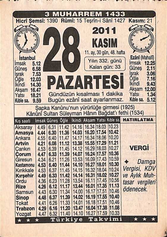 28 Kasım 2011 Takvim Yaprağı - Doğum Günü Hediyesi EFMN15261