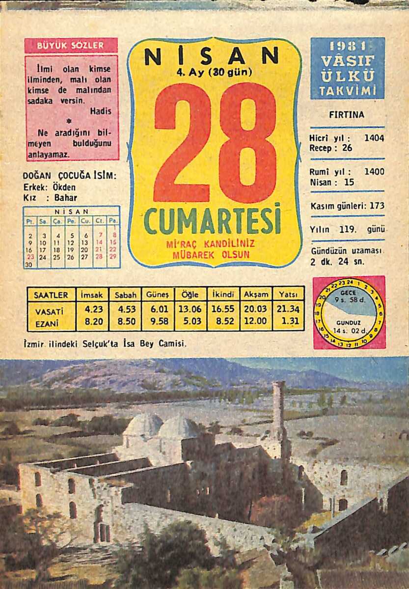 28 Nisan 1984 Takvim Yaprağı - Doğum Günü Hediyesi EFMN15175