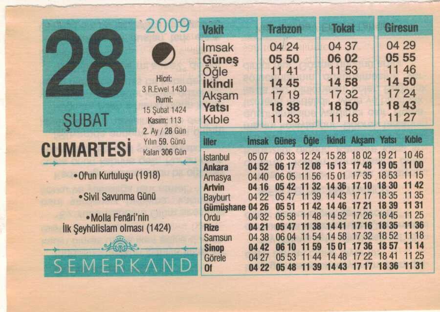 28 Şubat 2009 Takvim Yaprağı EFM(N)5633