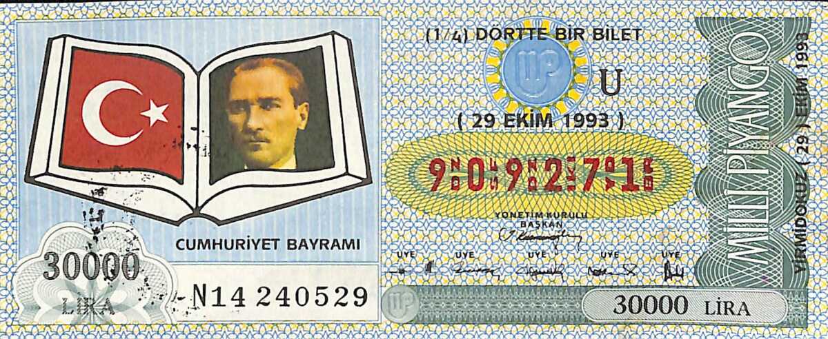 29 Ekim 1993 Piyango Bileti Dörtte Bir Bilet PYB6751
