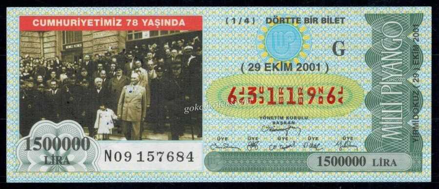 29 Ekim 2001 Çeyrek Bilet PYB2967