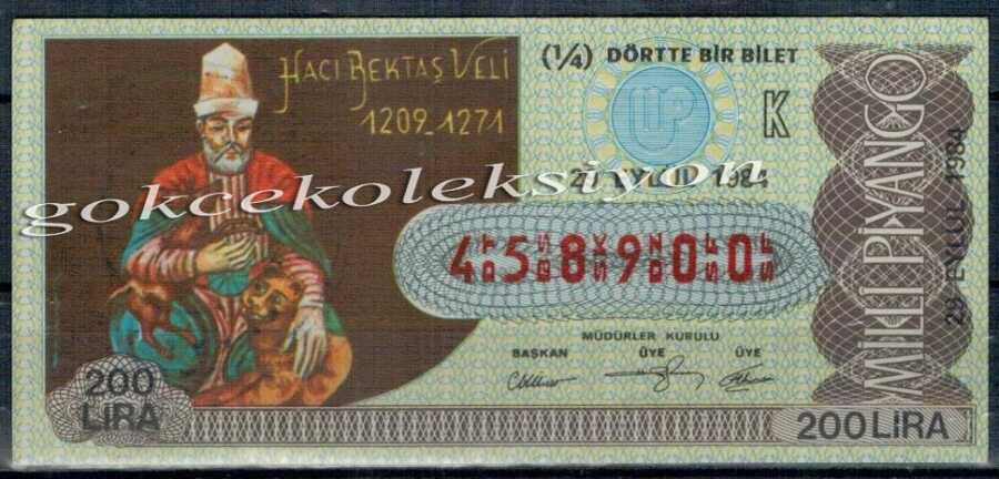 29 Eylül 1984 Çeyrek Bilet PYB1600