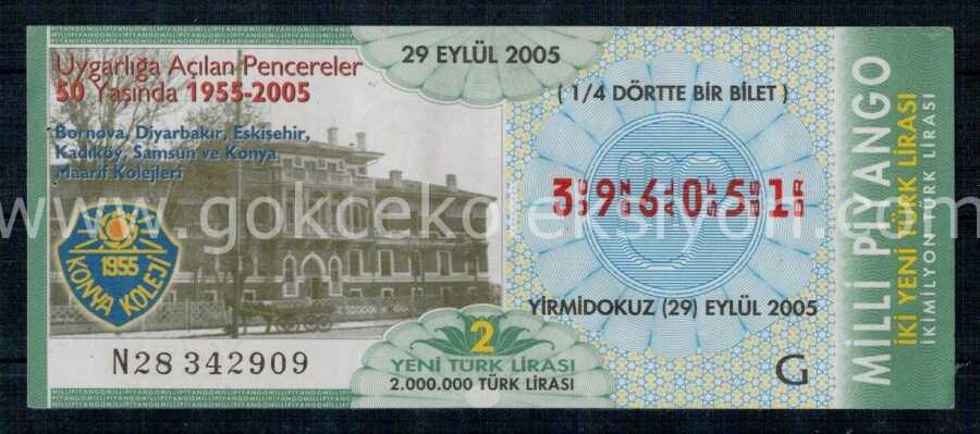 29 Eylül 2005 Çeyrek Bilet PYB1216