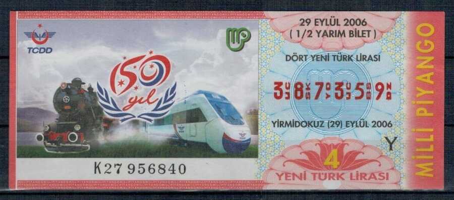 29 Eylül 2006 Çeyrek Bilet PYB2232