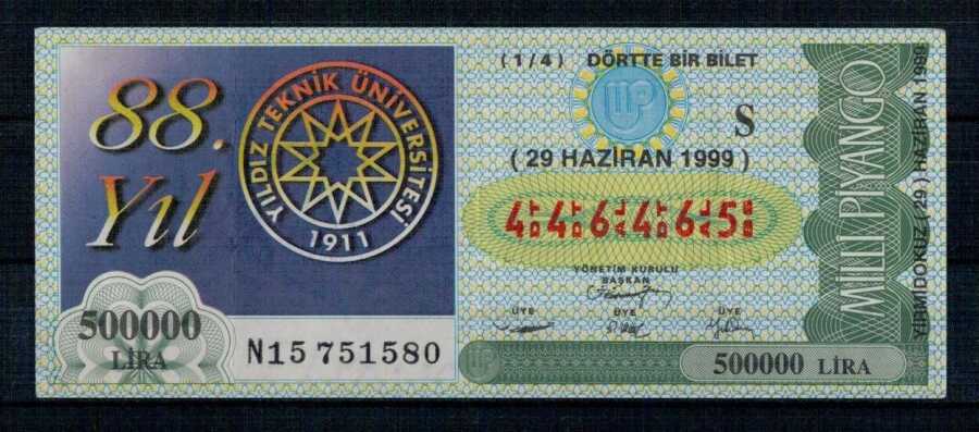 29 Haziran 1999 Çeyrek Bilet PYB2828