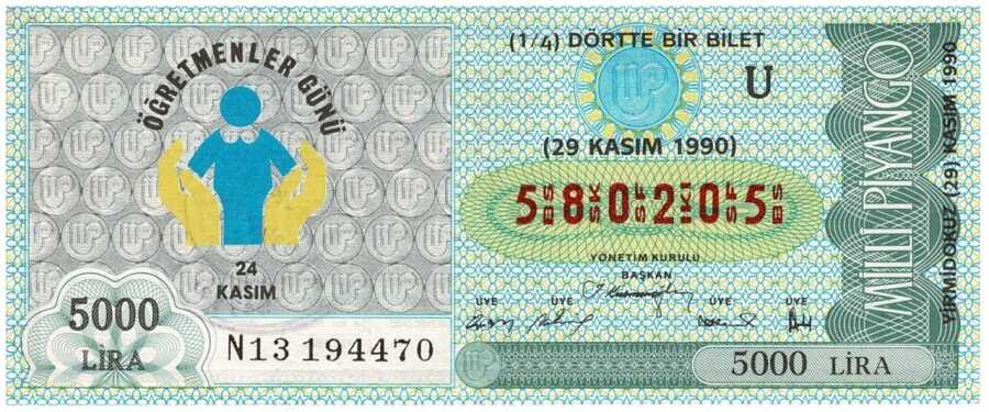 29 Kasım 1990 Çeyrek Bilet PYB3084