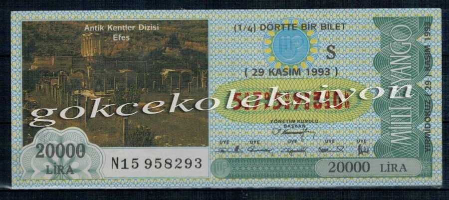 29 Kasım 1993 Çeyrek Bilet PYB2044