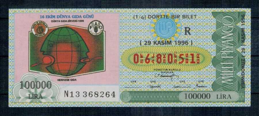 29 Kasım 1996 Çeyrek Bilet PYB1086