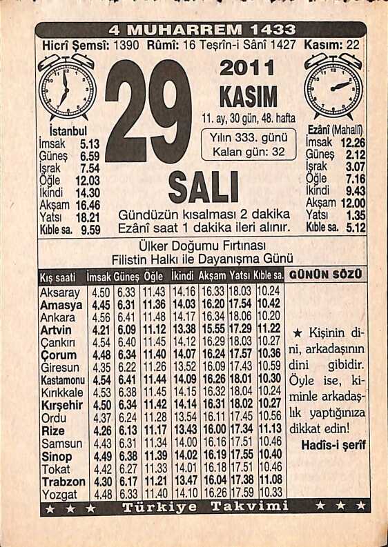 29 Kasım 2011 Takvim Yaprağı - Doğum Günü Hediyesi EFMN15260