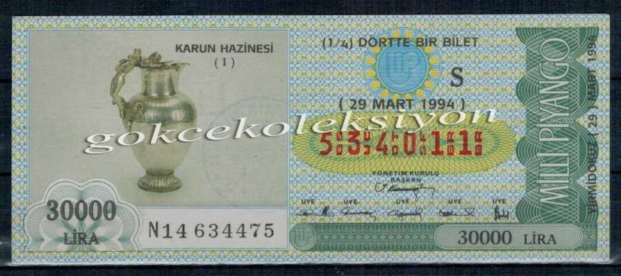 29 Mart 1994 Çeyrek Bİlet PYB2118