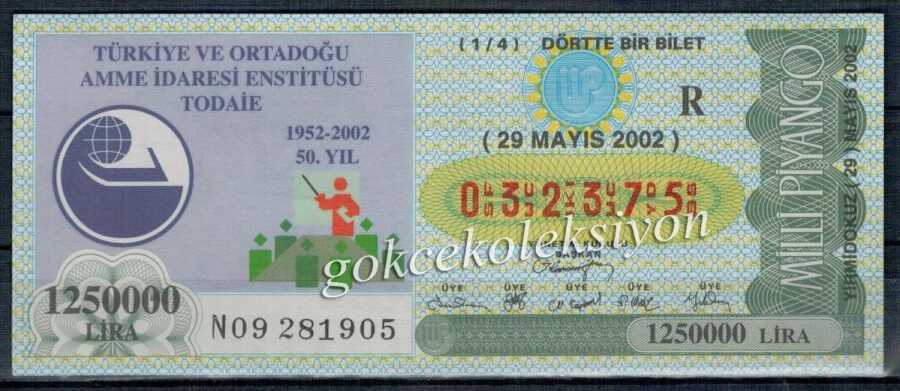 29 Mayıs 2002 Çeyrek Bilet PYB1890