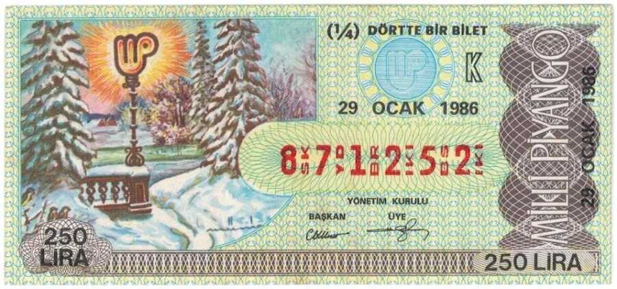 29 Ocak 1986 Piyango Bileti Çeyrek Bilet PYB3326