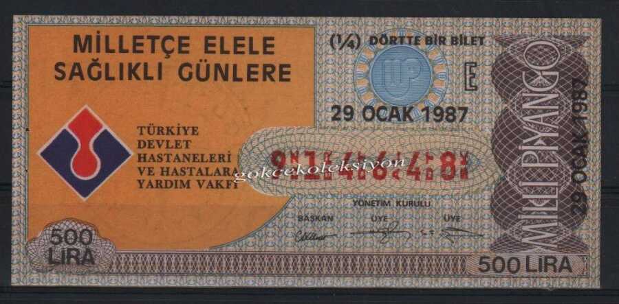 29 Ocak 1987 Çeyrek Bilet PYB1699