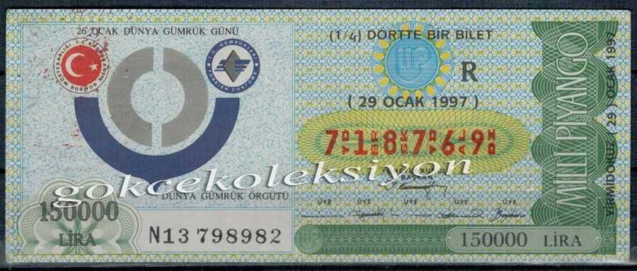 29 Ocak 1997 Çeyrek Bilet PYB1602