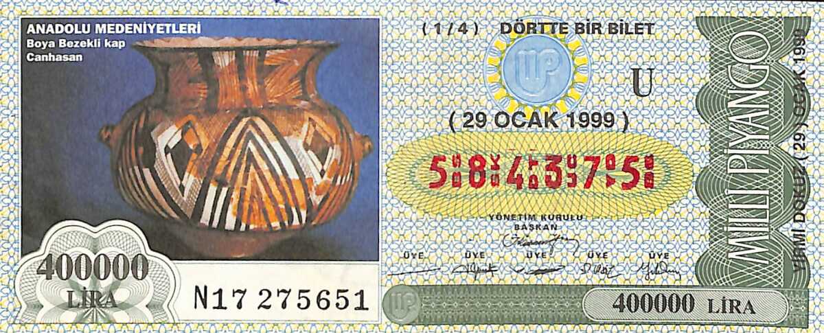 29 Ocak 1999 Piyango Bileti Dörtte Bir Bilet PYB6587