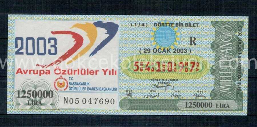 29 Ocak 2003 Çeyrek Bilet PYB1289
