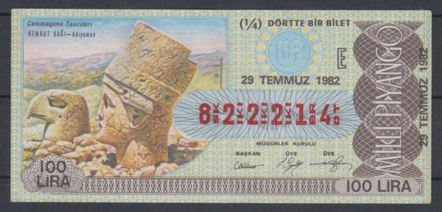 29 Temmuz 1982 Piyango Bileti Çeyrek Bilet Commagene Tanrıları , Nemrut Dağı, Adıyaman PYB131